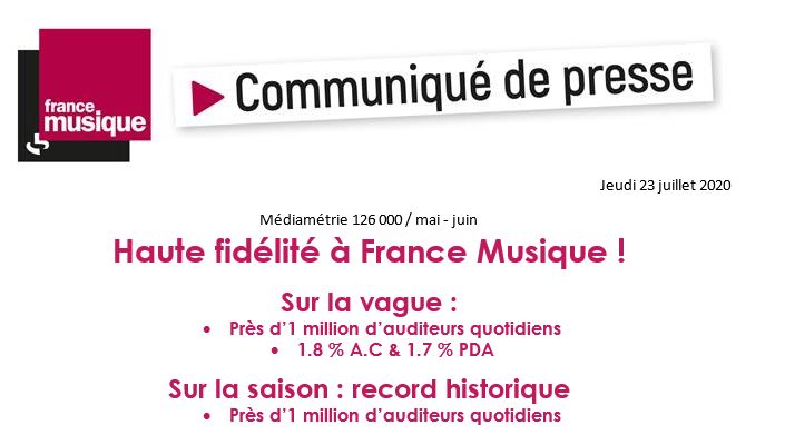 Médiamétrie 126 000 – Mai-Juin 2020 14,1 millions d’auditeurs à l’écoute