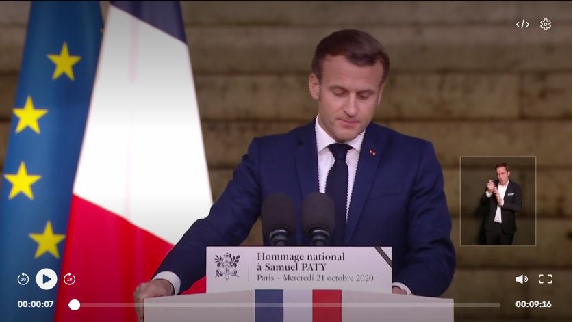 Dans leurs bulletins d’information de ce jour, 26/10, des journalistes de France Inter et de Franceinfo ont dénaturé les propos tenus par le Président de la République à l’occasion de son hommage rendu à Samuel Paty. En effet, M. Macron aurait déclaré selon eux, vouloir continuer de caricaturer Mahomet.