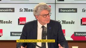 Thierry Breton, commissaire européen au Marché intérieur, était l’invité de « Questions Politiques » ce dimanche ce 14 novembre. Une émission présentée par Thomas Snegaroff avec Laurence Peuron (France Inter), Jeff Wittenberg (France TV), Françoise Fressoz (Le Monde) et Alexandra Bensaid (France Inter). Des réactions d’auditeurs à retrouver ici : M. Snegaroff,Pourriez-vous, par pure charité chrétienne et … Lire la suite de #46 Thierry Breton, invité de Questions Politiques